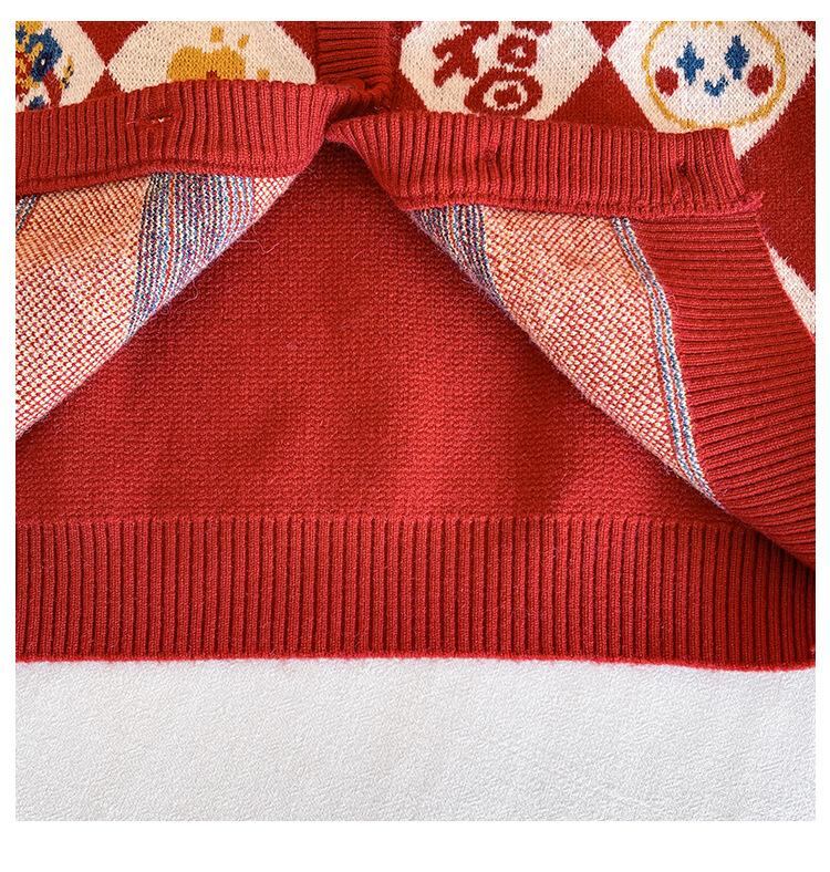 子供服 ニット カーディガン 秋冬 男の子 女の子 厚手 中国風 レッド アクリル トップス かわいい おしゃれ 新年 お祝い 90 100 110 120 130 140 150