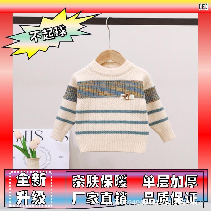 ニット 子供服 男の子 ニットセーター 厚手 裏起毛 ボーダー柄 トップス 長袖 春秋冬 普段使い 通園 通学 90 100 110 120 130