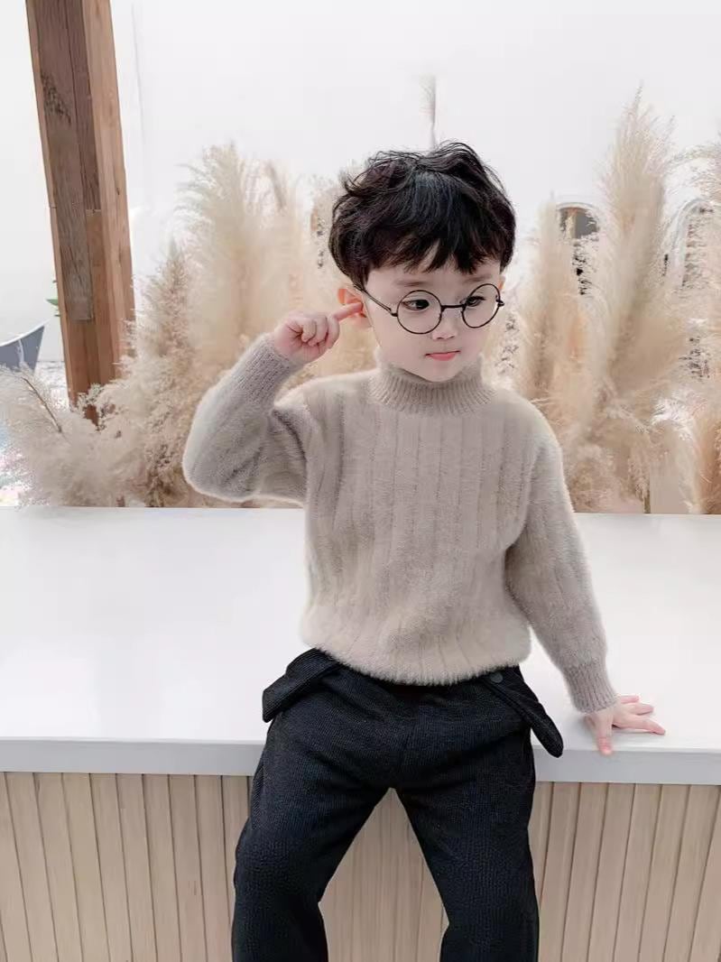 ニット・セーター キッズ 男の子 裏起毛 厚手 タートルネック ニット 冬 普段使い 防寒 暖かい 水貂绒 灰色 白色