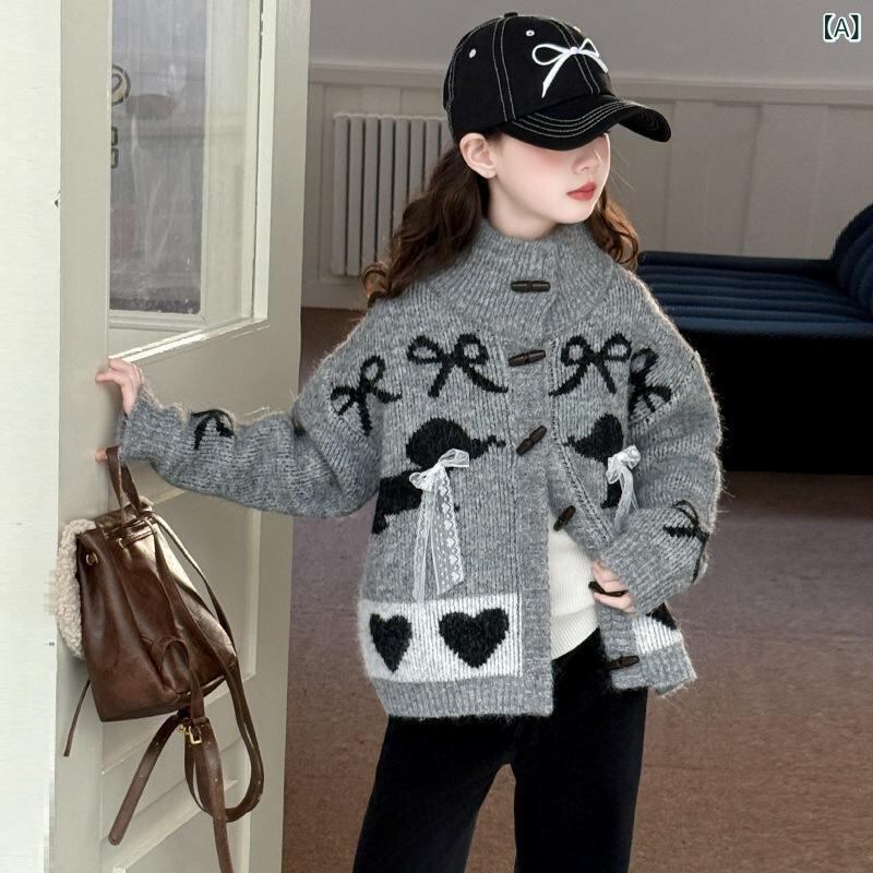 ニット・セーター キッズ 女の子 フェアアイル柄 カーディガン 秋冬 長袖 厚手 ニット トップス かわいい ガールズ 子供服 セーター ニットウェア