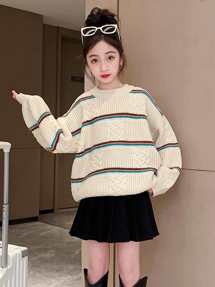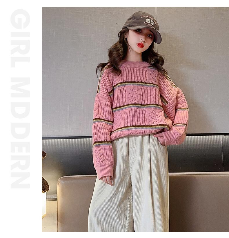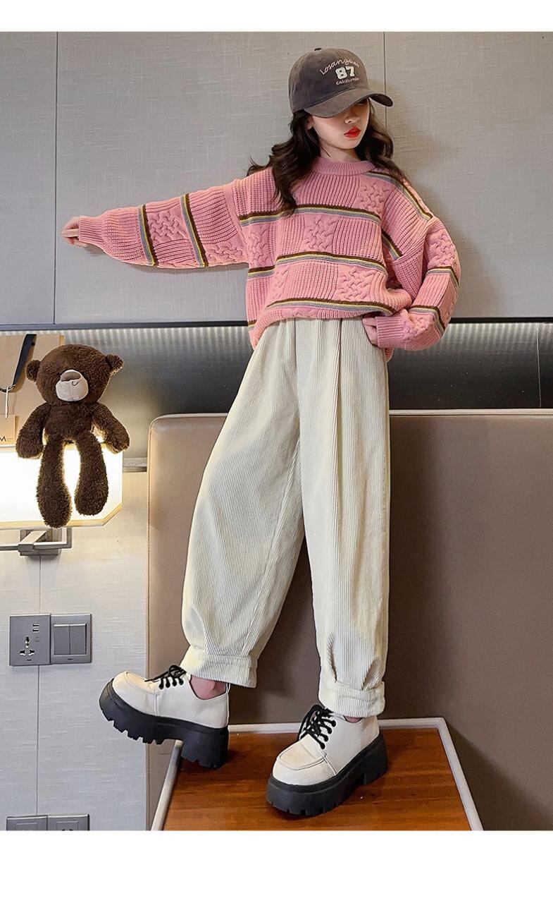 ニット セーター キッズ 女の子 子供服 裏起毛 トップス 長袖 秋冬 厚手 暖かい 防寒 韓国風 かわいい おしゃれ 普段着 通学 ベージュ ピンク系 120 130 140 150 160 170