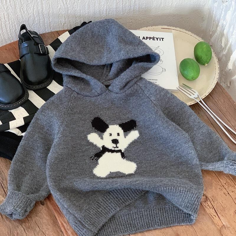 ニット セーター キッズ 男の子 子供 秋冬 トップス カートーン柄 防寒 暖か グレー 通園 普段使い