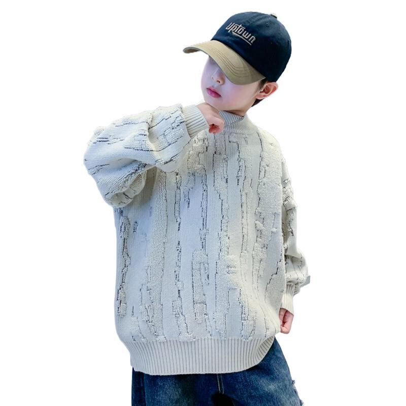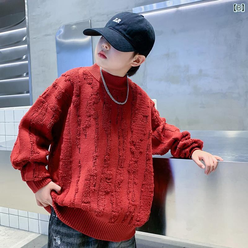ニット・セーター キッズ 男の子 裏起毛 秋冬 厚手 子供服 トップス 長袖 丸首 無地 普段着 防寒 暖かい レッド系 アクリル