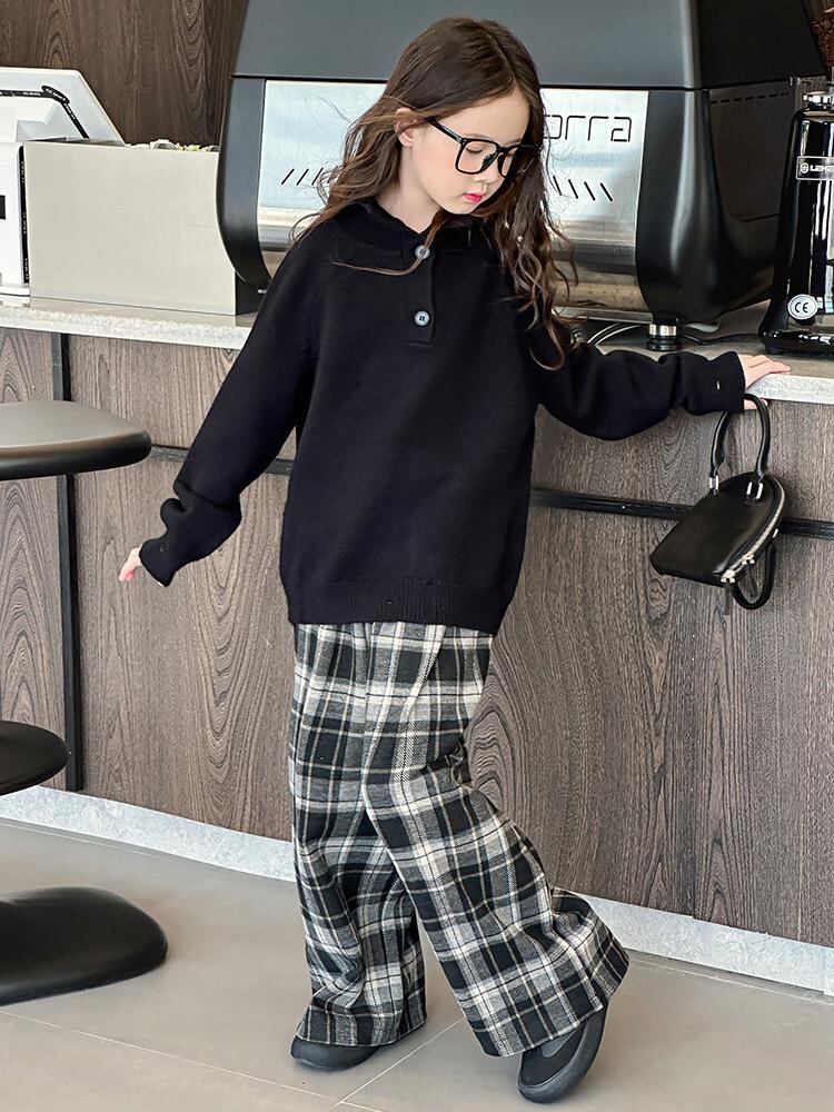 子供服 ニット セーター 女の子 秋冬 トップス 長袖 韓国風 おしゃれ かわいい 襟付き セーター 普段着 通学着 120cm 130cm 140cm 150cm 160cm 170cm ブラック