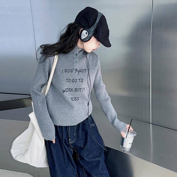ニット・セーター ガールズ キッズ 長袖 トップス 秋冬 子供服 セーター ニット プルオーバー 女の子 女児 丸首 伸縮性 ストレッチ やわらか かわいい おしゃれ グレー