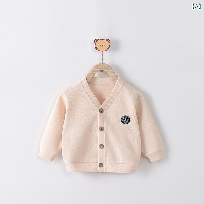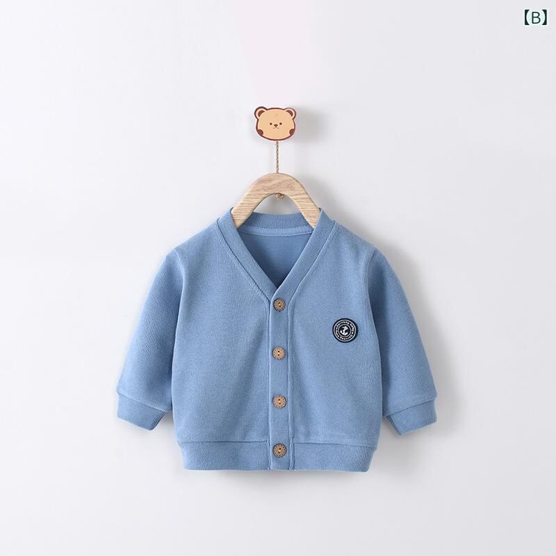 ニットカーディガン キッズ ベビー 男女兼用 春秋 厚手 コットン Vネック 子供服 トップス アウター 保温性 普段使い かわいい オフホワイト ブルー