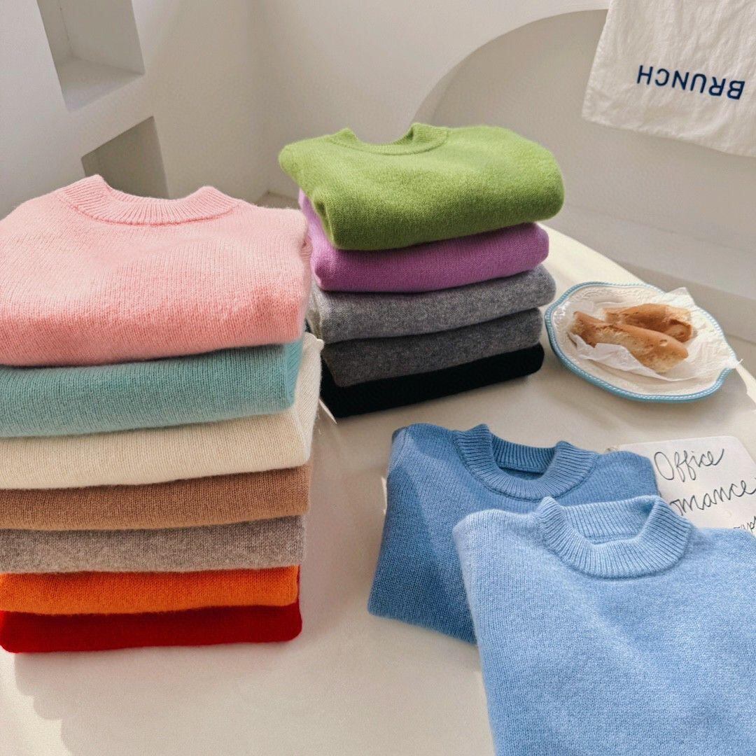 子供服 ニット・セーター 男女兼用 キッズ セーター ウール 暖かい プルオーバー トップス 秋冬 無地 男の子 女の子 普段着