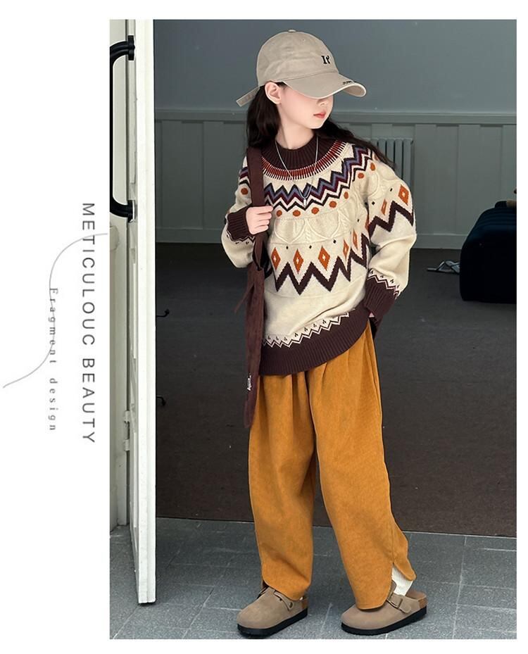 ニット セーター ガールズ 子供服 秋冬 長袖 トップス フェアアイル柄 ジャガード 暖かい 防寒 かわいい おしゃれ カジュアル 普段着 通学着