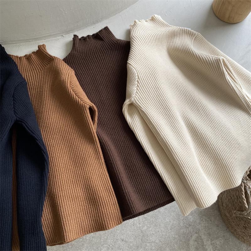 子供服 セーター 女の子 ニット トップス 秋冬 韓国風 タートルネック カットソー 長袖 無地 伸縮性 綿100% 普段着