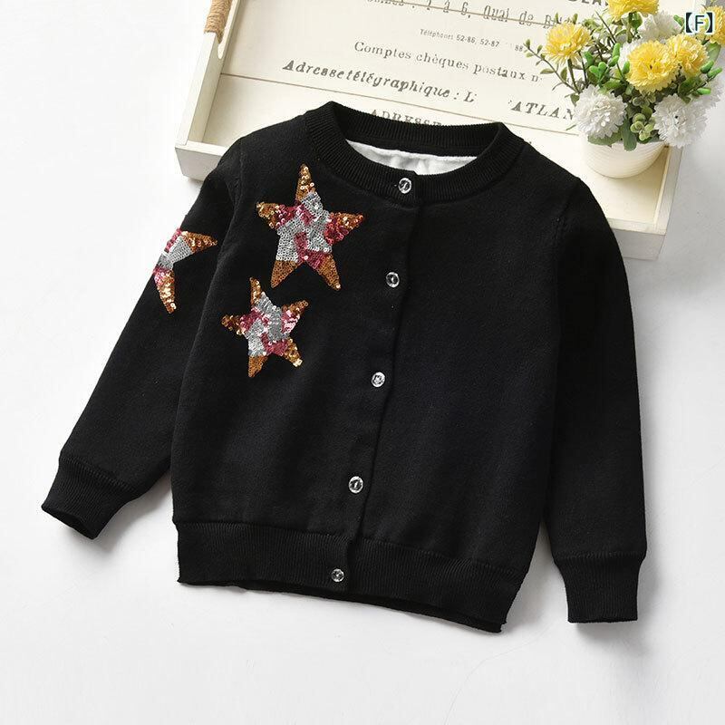 ニット・カーディガン ガールズ 子供服 秋冬 星柄 刺繍 刺繡 綿 かわいい 普段使い お出かけ着 おしゃれ 80 90 100 110 120 130 140 S