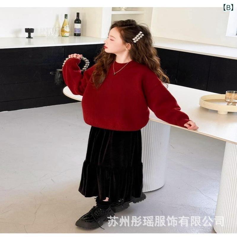 ニット セーター キッズ 女の子 子供服 秋冬 厚手 蝶結び かわいい プリンセス 暖かい トップス 長袖 ガールズ 防寒 通園 通学 普段着 レッド系