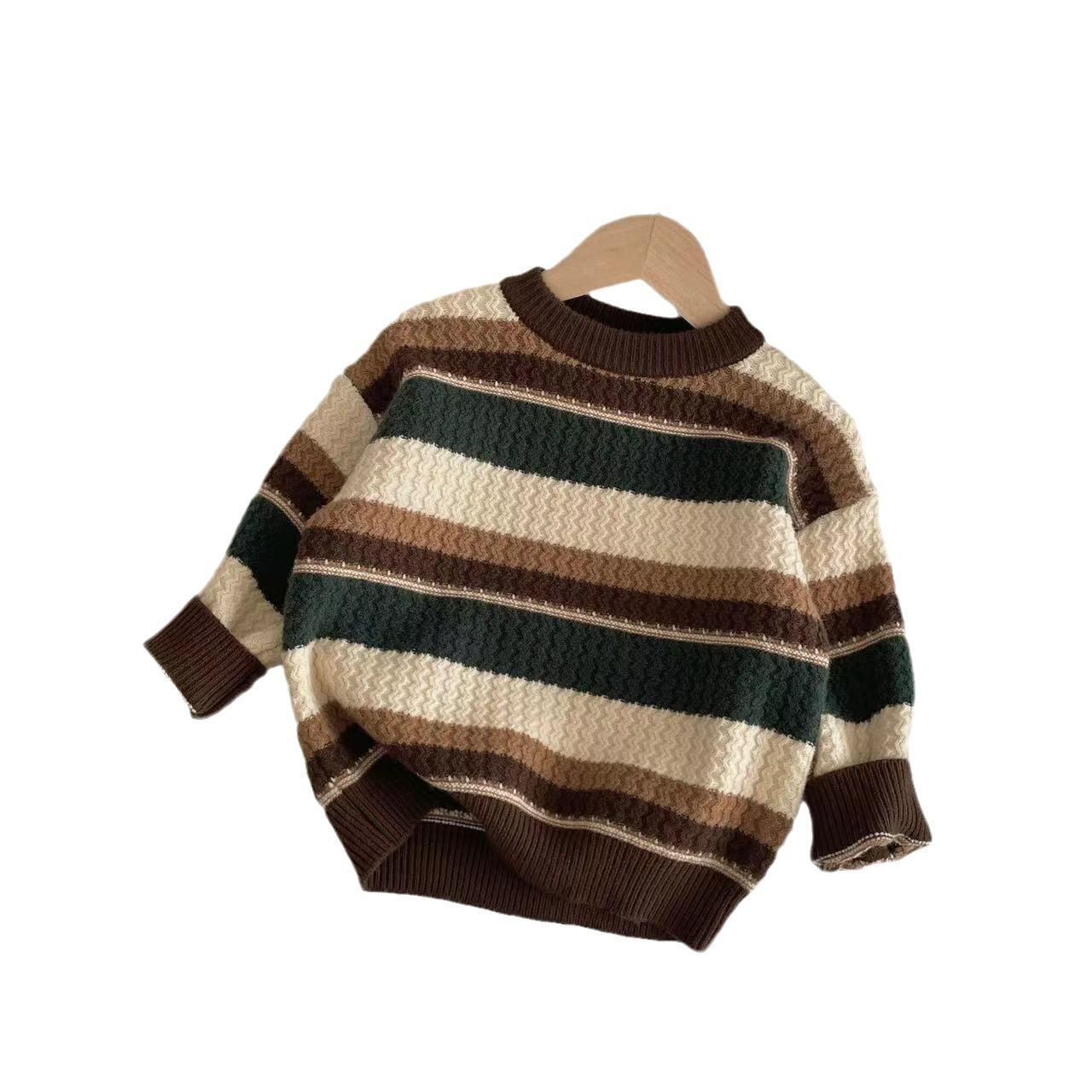 子供服 ニット 秋冬 ストライプ柄 厚手 男の子 ニット トップス カットソー 保温性 コットン 90 100 110 120 130 140