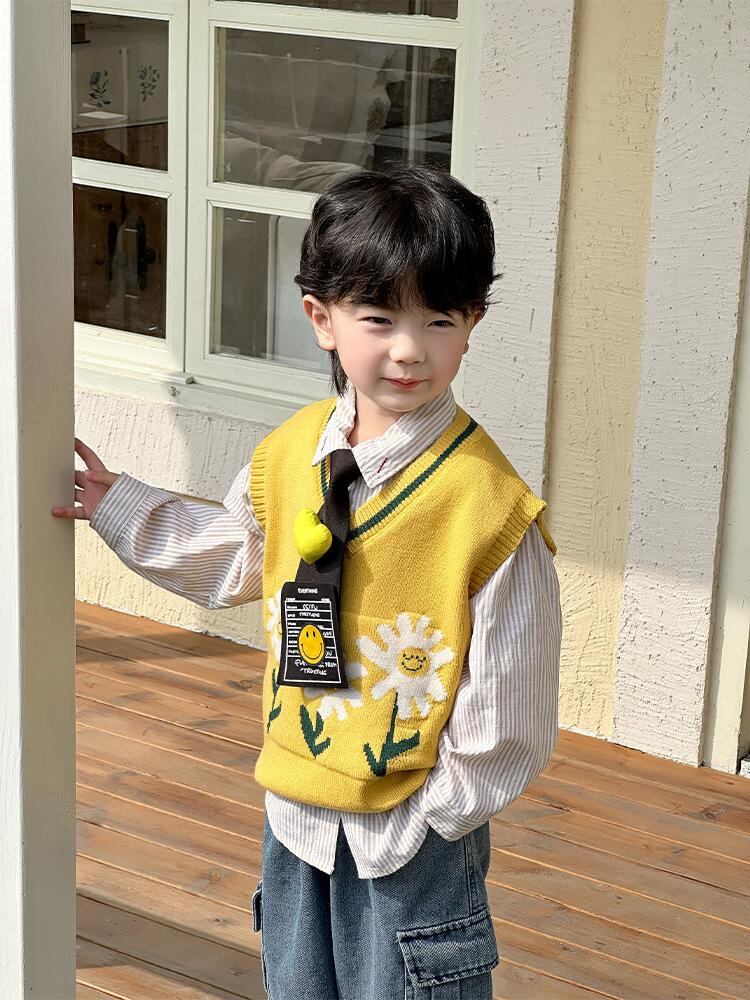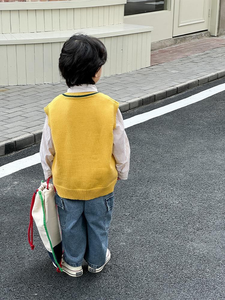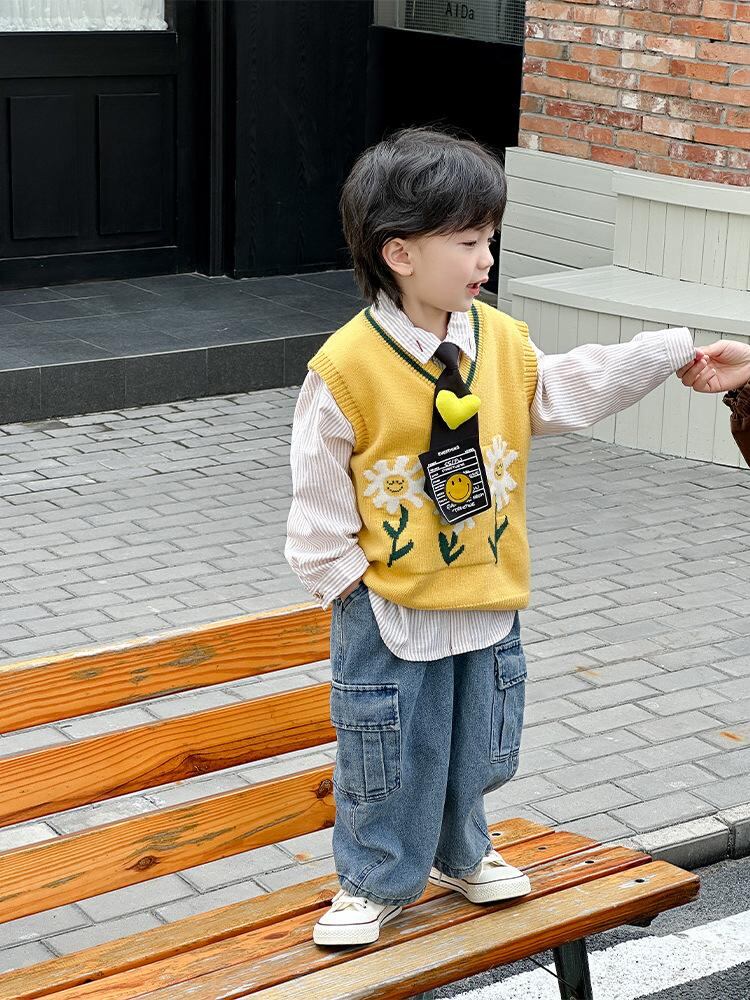 ニットベスト キッズ 男の子 子供 Vネック ケーブル編み 提花柄 トップス 春秋 かわいい カジュアル 普段着