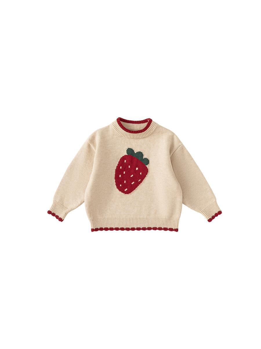 ニット・セーター キッズ 女の子 いちご柄 クリスマス 長袖 トップス 子供服 春秋 かわいい 丸首 80 90 100 110 120 130 140 150