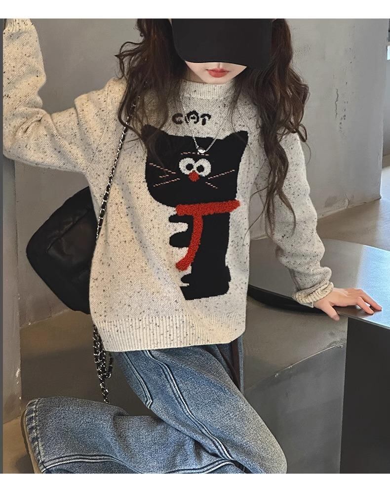 ニット・セーター キッズ 女の子 秋冬 ニット トップス 子供服 長袖 プルオーバー 120 130 140 150 160 170 杏色 かわいい 鹿