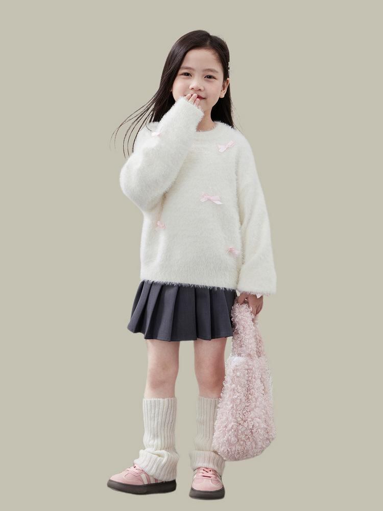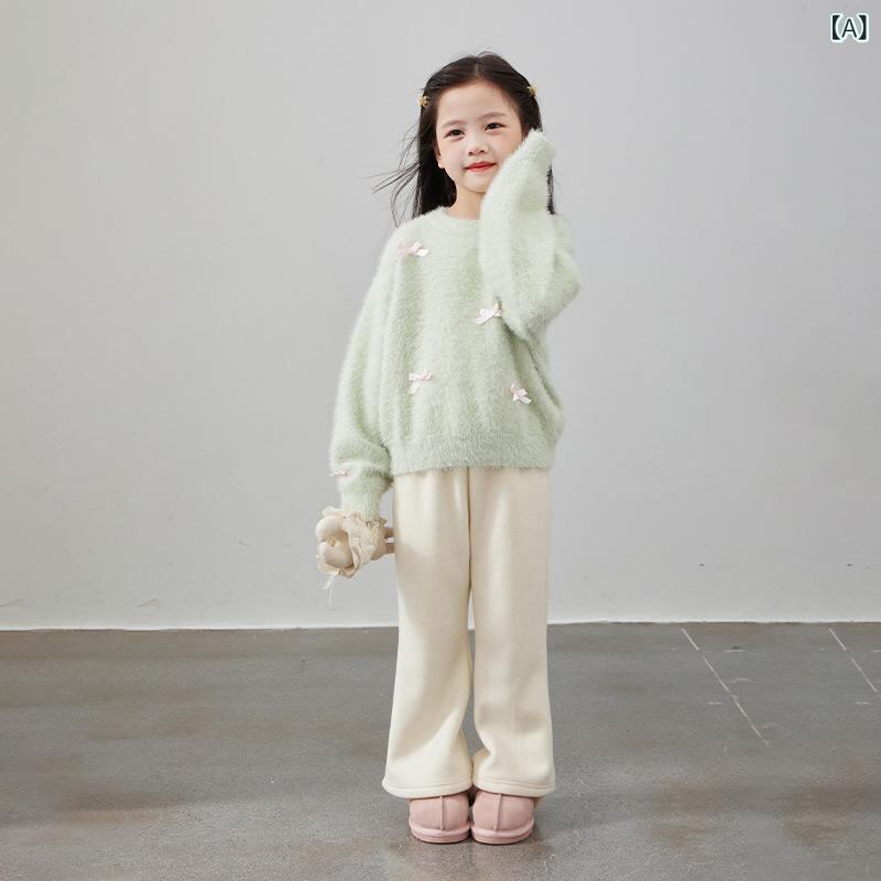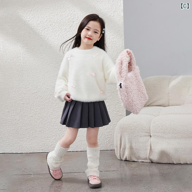 ニット キッズ 女の子 厚手 セーター トップス インナー 花柄 無地 かわいい 柔らかい 暖かい 冬 秋 子供 ニットセーター ピンク系 グリーン ホワイト 90 100 110 120 130 140 150 160