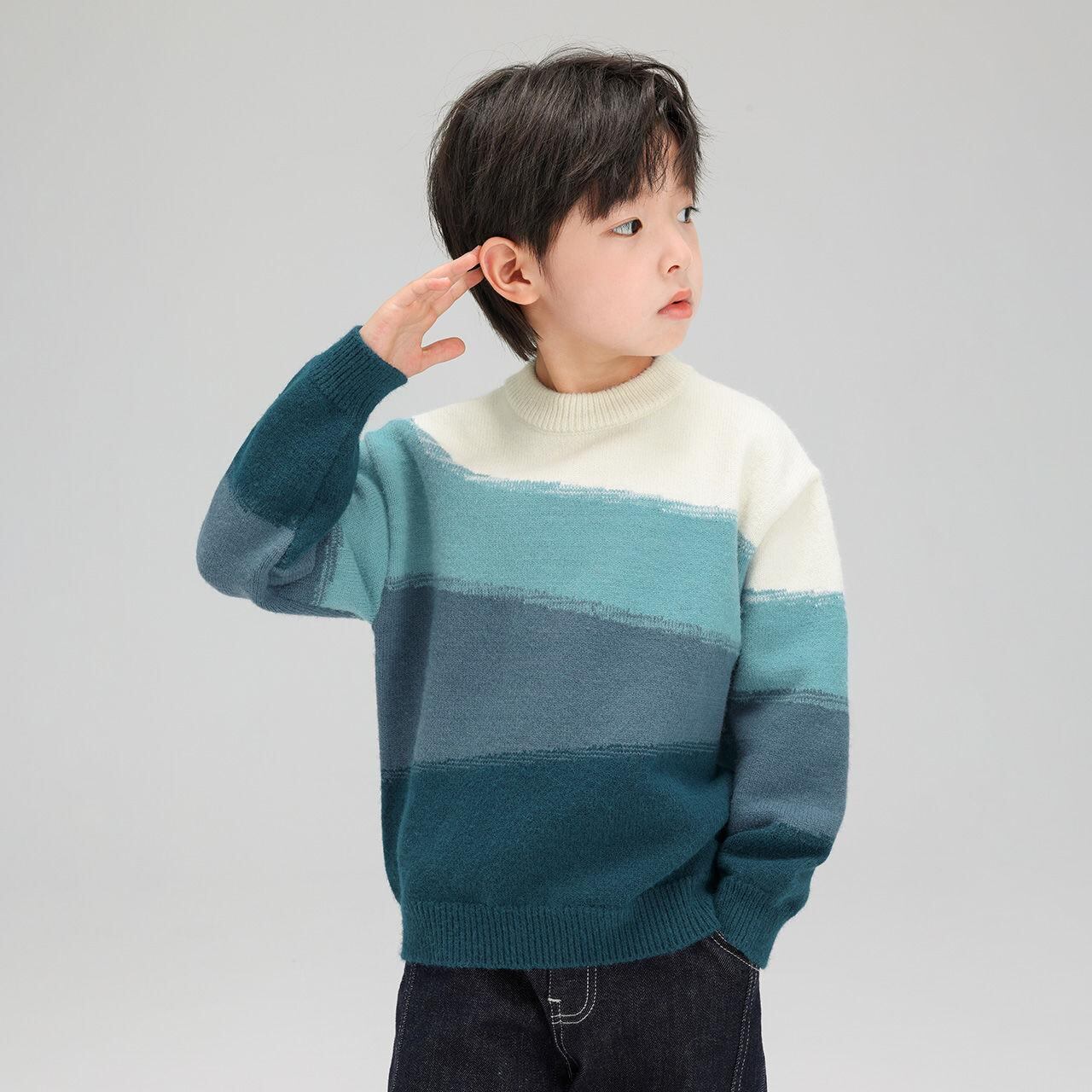 ニット キッズ 男の子 子供服 セーター 秋冬 厚手 防寒 暖かい 長袖 トップス カジュアル 普段使い 青色 ブラウン系