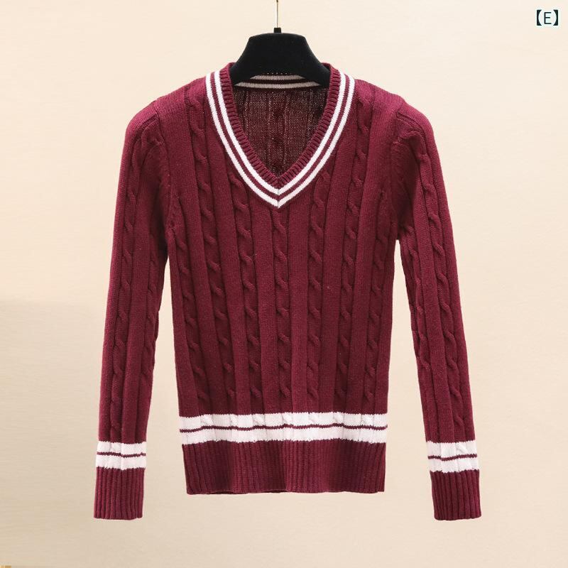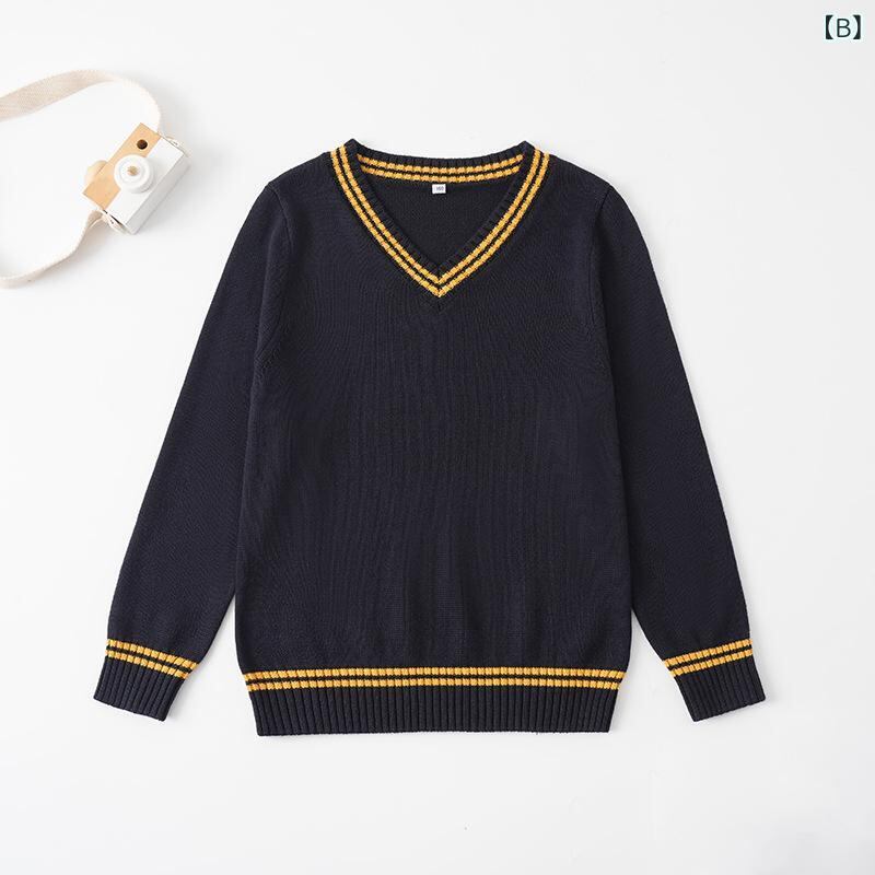 ニット セーター キッズ 男女兼用 子供服 Vネック ストライプ 配色 コットン 綿100% 学院風 秋冬 親子 ペアルック 普段着