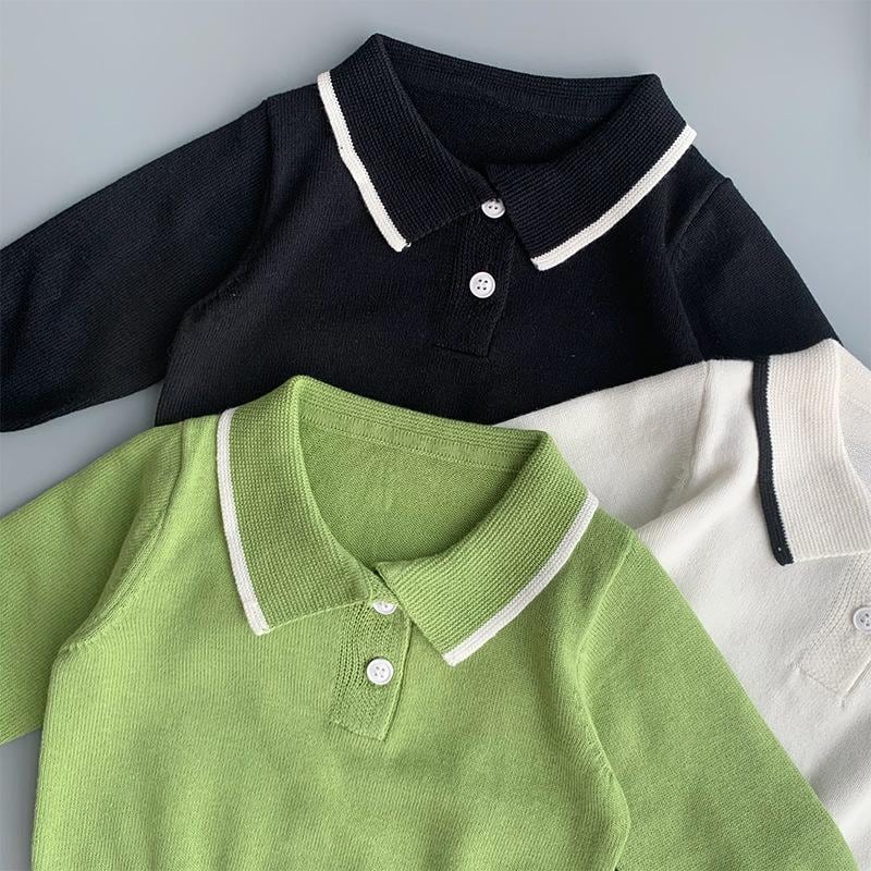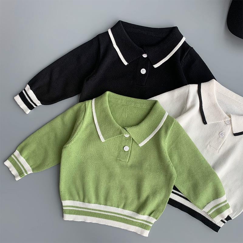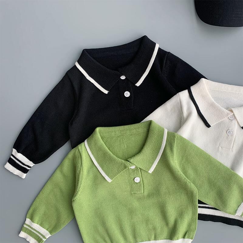 子供 ニット ポロシャツ 秋冬 男女 ベビー 薄手 ドール襟 セーター 百搭 綿 トップス
