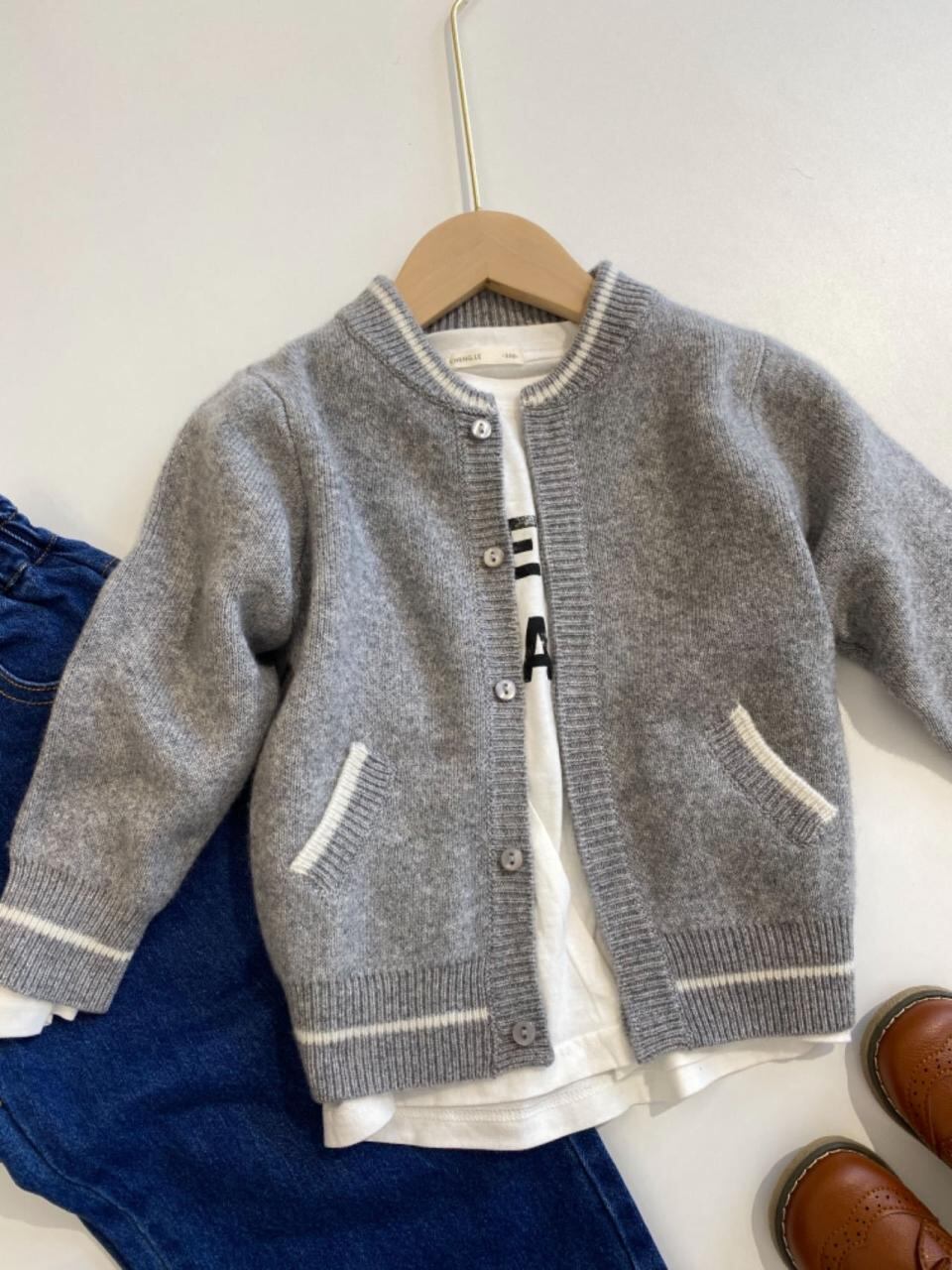 子供服 カーディガン 男女兼用 ニット カシミヤ セーター 厚手 ジャケット 棒球服 アウター 秋冬 無地 男の子 女の子 ベビー キッズ 丸首 80 90 100 110 120 130 140 150cm
