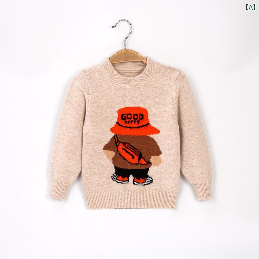 子供服 ニット 男児用 セーター トップス カットソー 長袖 丸首 プルオーバー カシミヤ混紡 羊毛混紡 動物柄 カジュアル かわいい 秋冬
