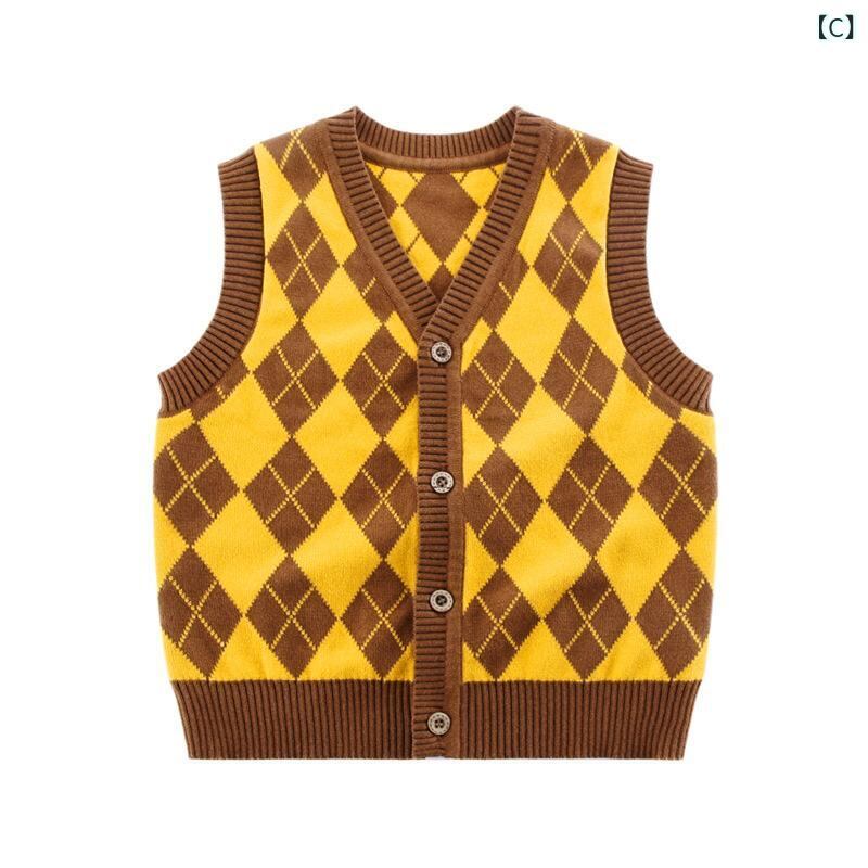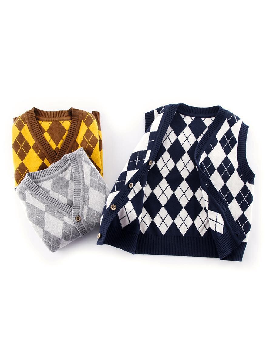 ニットベスト キッズ 格子柄 カーディガン 男の子 女の子 子供服 トップス 親子 ペア Vネック 秋冬 綿 普段使い かわいい 柔らかい