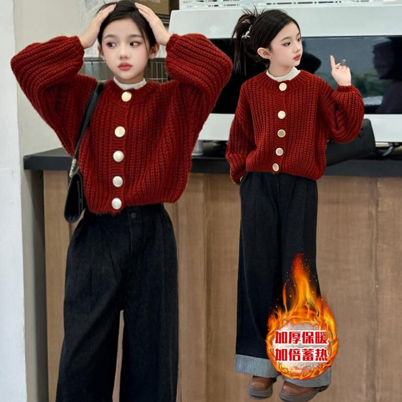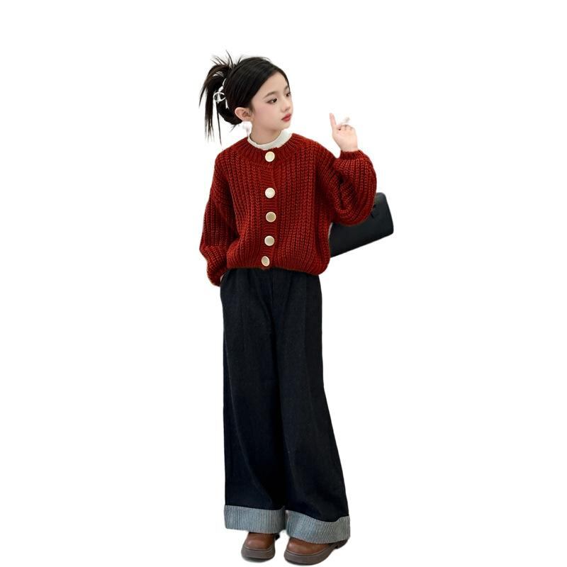子供 ニット カーディガン 秋冬 女の子 大童 赤 ニット 中学生 羽織り トップス
