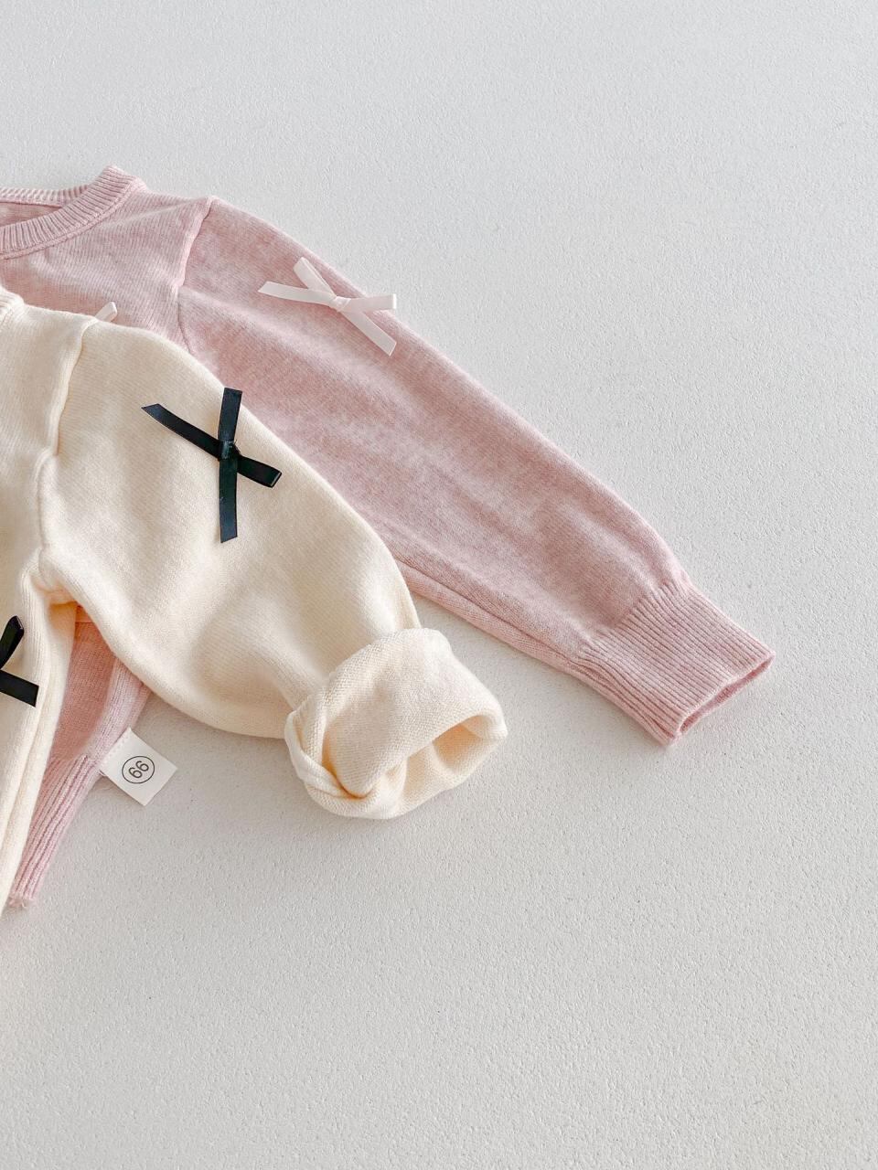 ニット キッズ 女の子 カーディガン コットン 長袖 春秋 ベビー 子供服 アウター 柔らかい 蝶結び かわいい ピンク系 アイボリー 66cm 73cm 80cm 90cm 100cm