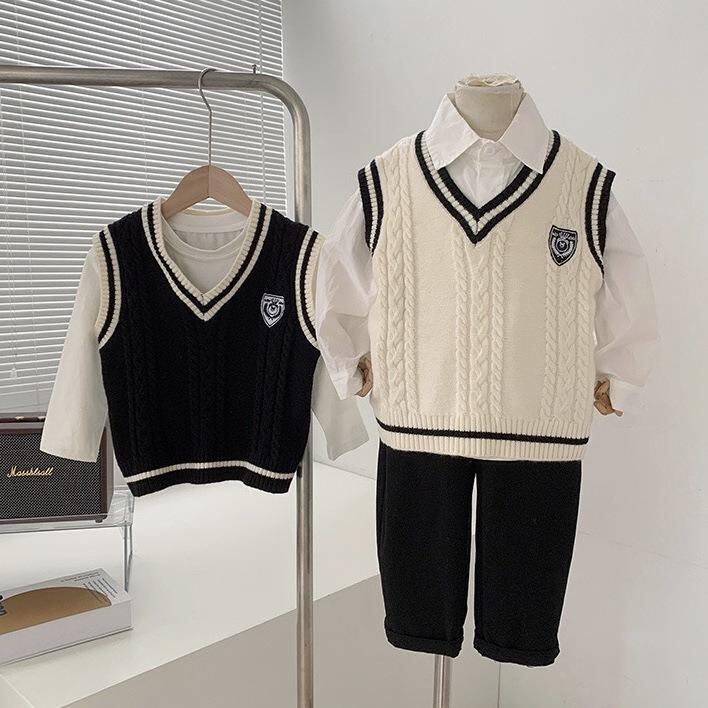 ニットベスト キッズ 男の子 子供服 韓国風 スクールベスト Vネック セーター トップス 普段着 杏色 ブラック