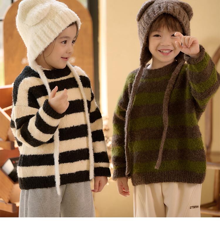 子供服 ニット/セーター 秋冬 キッズ ボーイズ/ガールズ ストライプ柄 厚手 防寒 普段使い 遊び着 かわいい 男の子/女の子 幼児/小学生 リブ編み ポリエステル