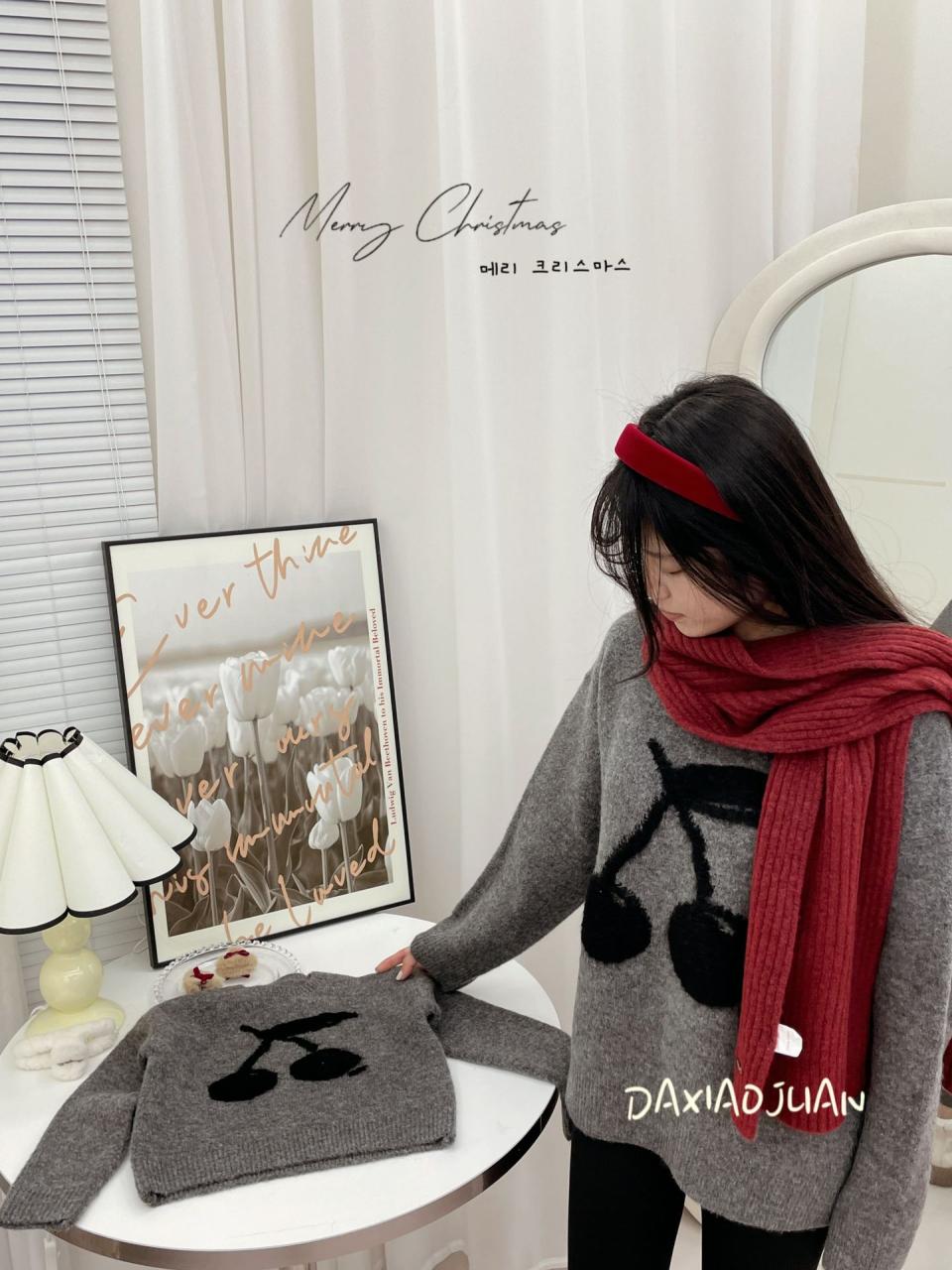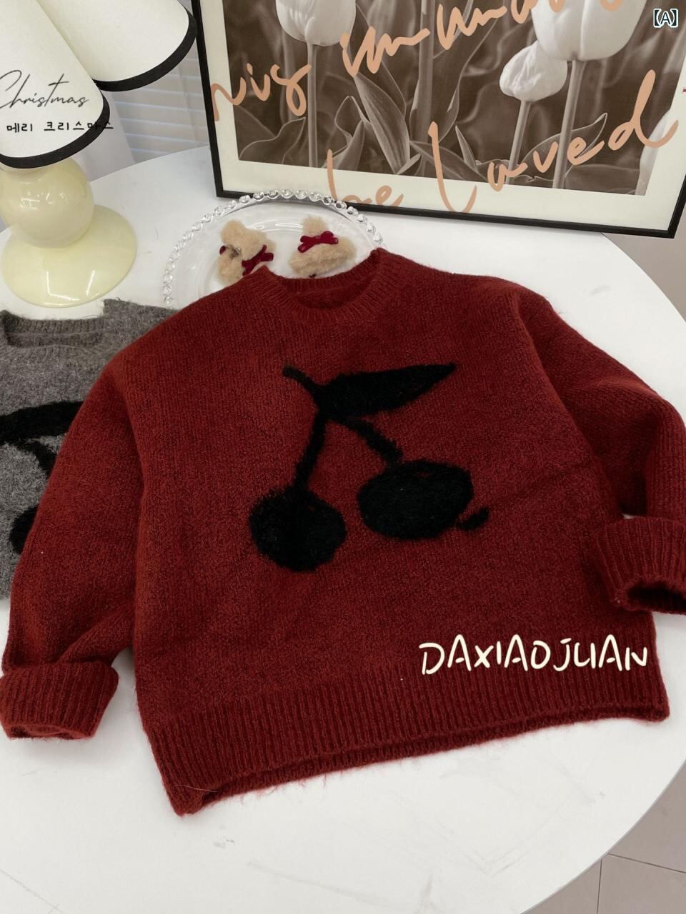 ニット キッズ 女の子 親子 大柄 チェリー コットン セーター トップス 秋冬 韓国風 柔らか ふわふわ かわいい 赤 グレー