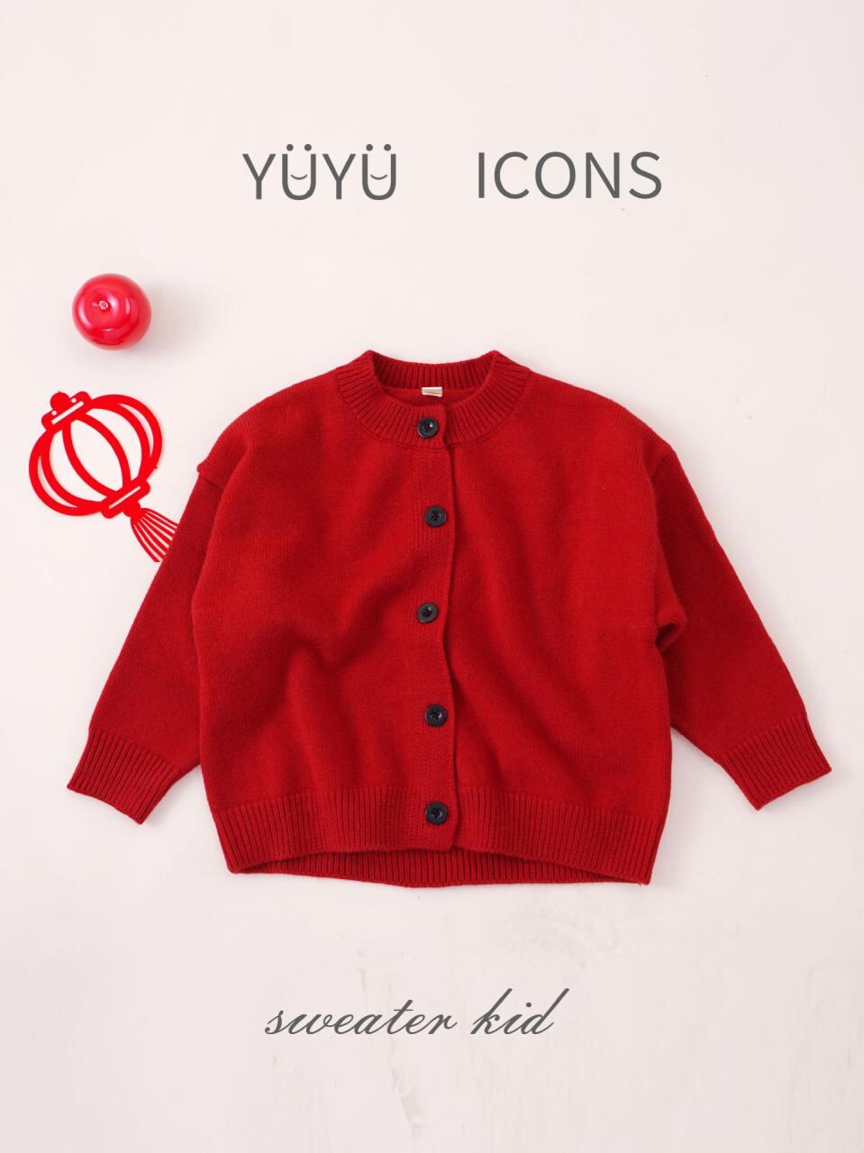 ニット 子供服 男女兼用 ニットカーディガン 中国レッド 配色 秋冬 春 かわいい 長袖 丸首 セーター 普段使い 保育園 幼稚園
