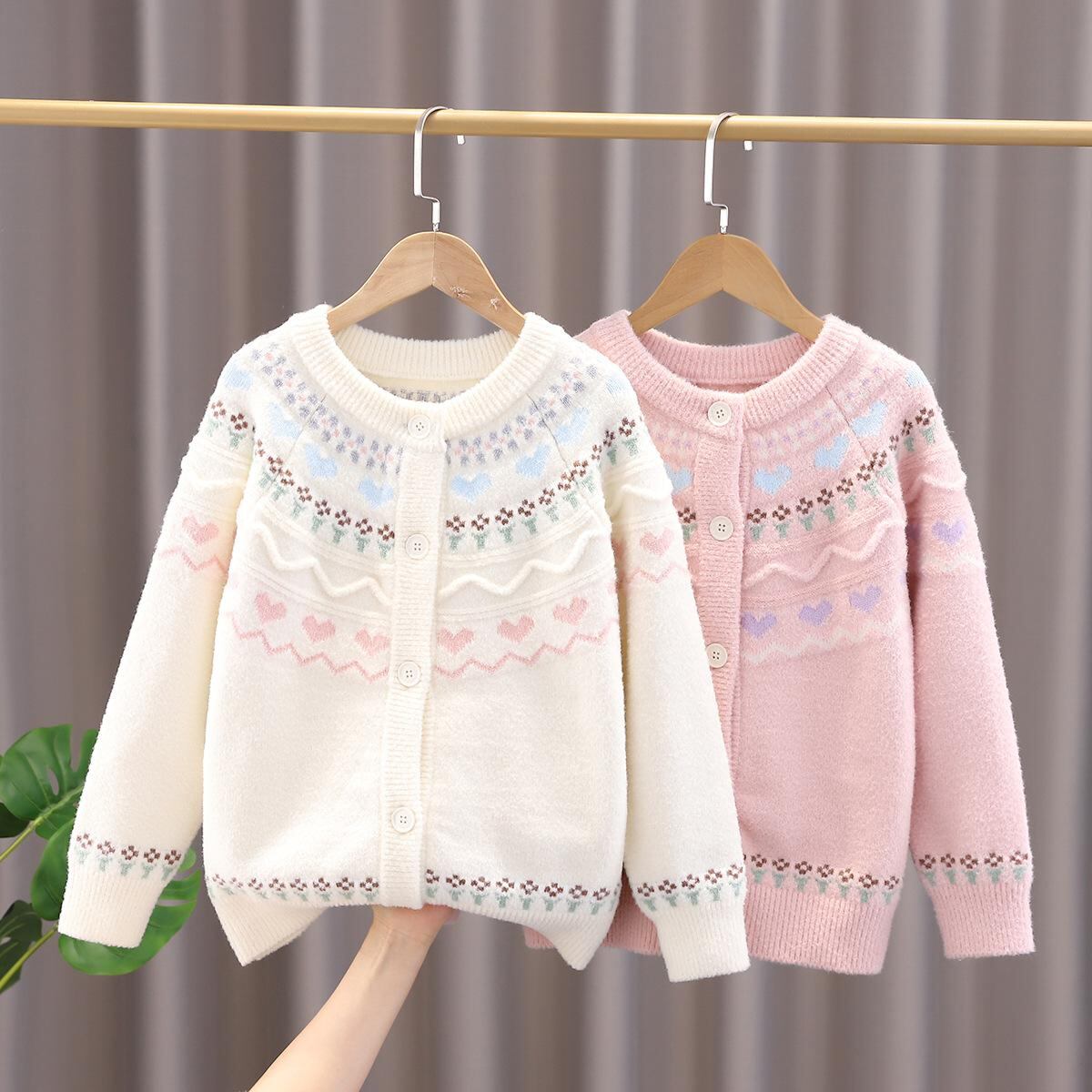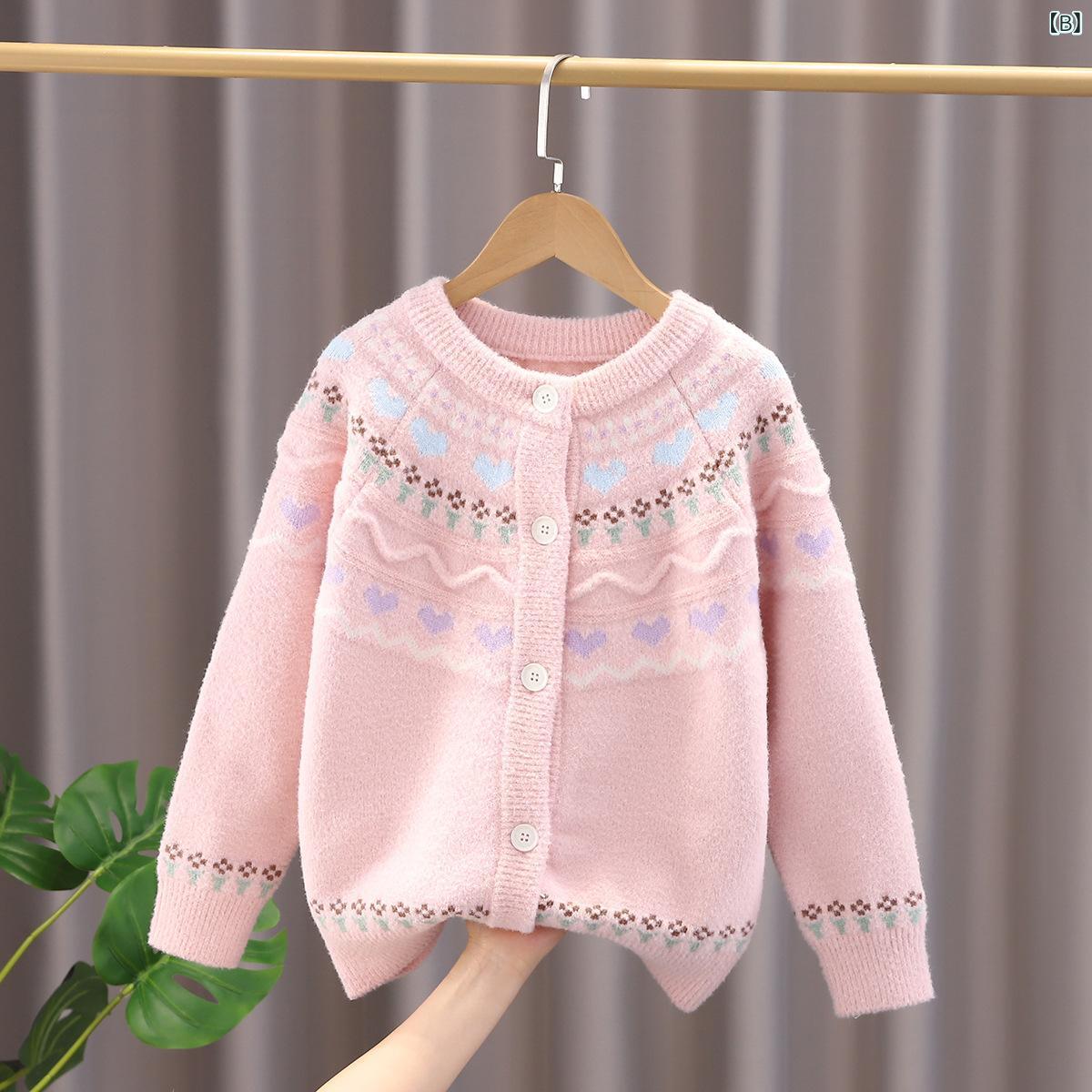 子供服 ニットカーディガン 女の子 秋冬 ニットトップス ストライプ 長袖 丸首 セーター アウター 普段着 通学着 120cm 130cm 140cm 150cm 160cm 170cm