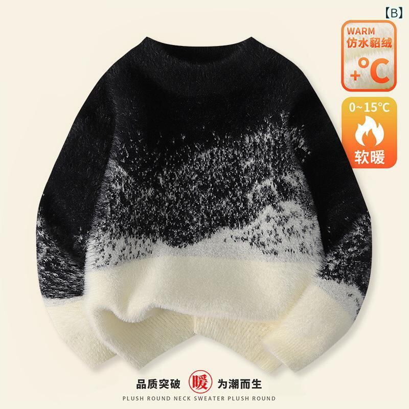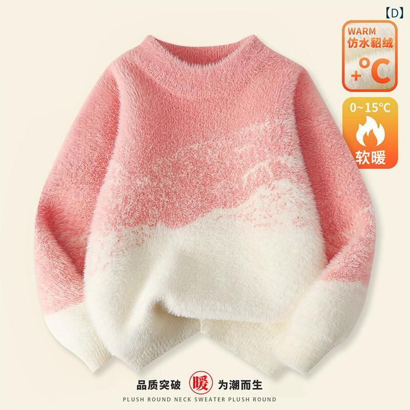 子供服 ニット セーター 男の子 女の子 ミンクフリース 厚手 防寒 グラデーション 秋冬 トップス 普段着