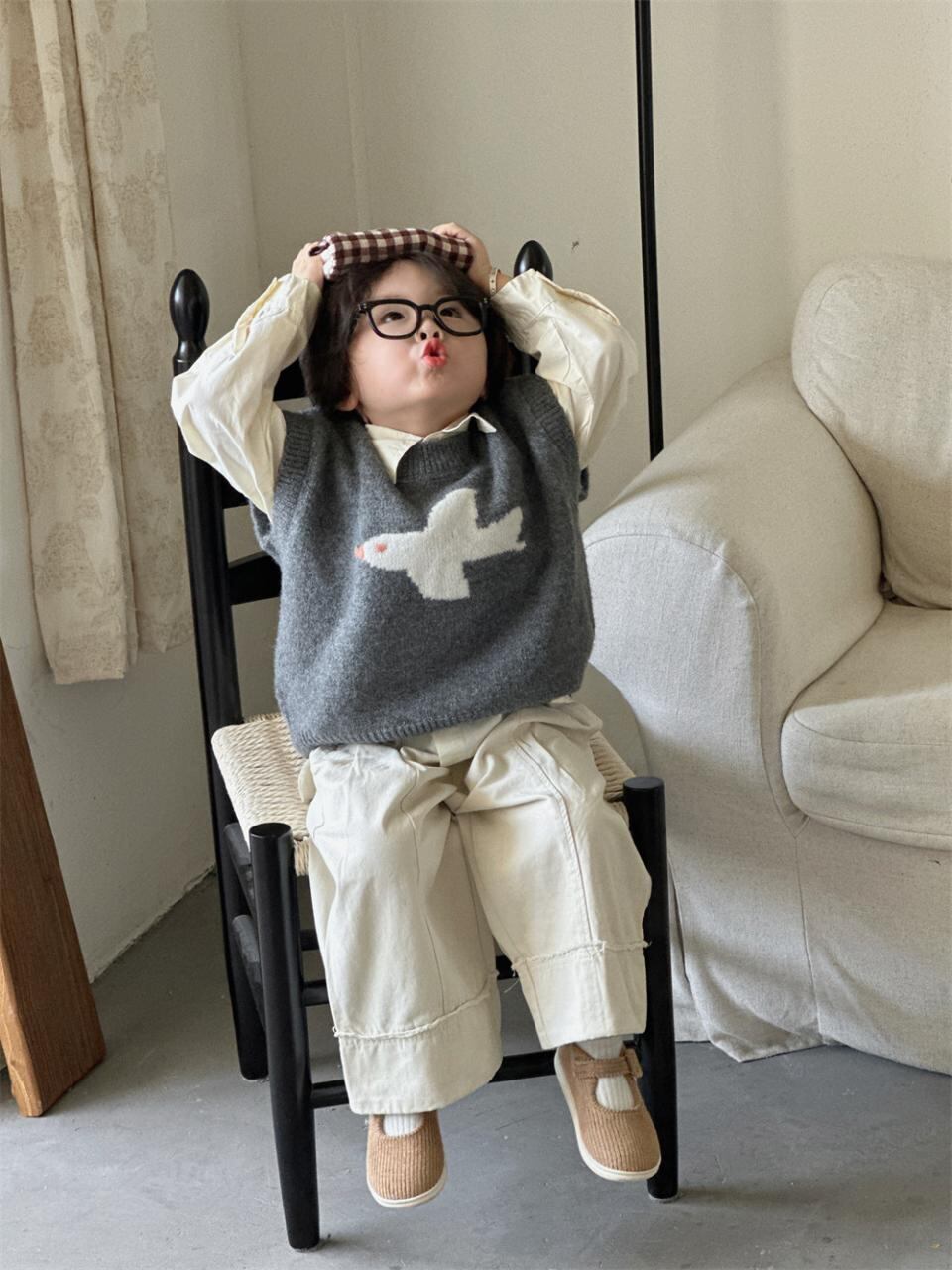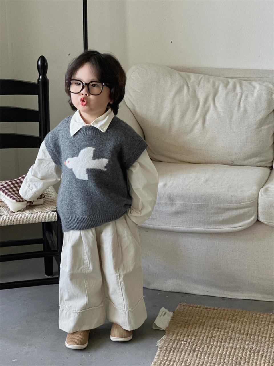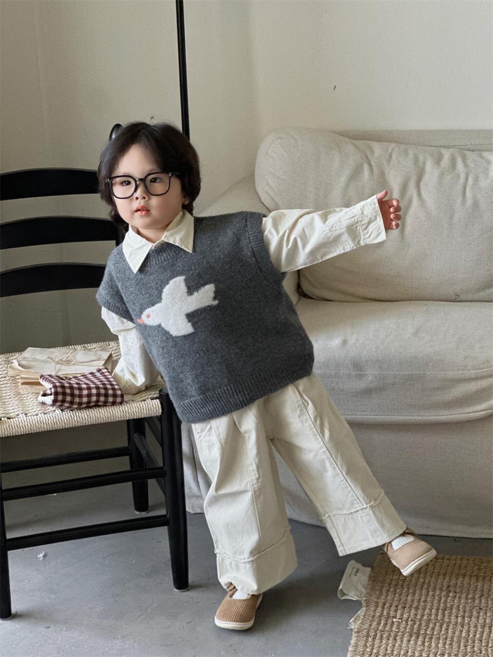 子供服 ニットベスト 男の子 女の子 森ガール レトロ柄 セーター ベスト チョッキ アウター 丸首 普段使い 通園 通学 伸縮性 90 100 110 120 130 140 春秋