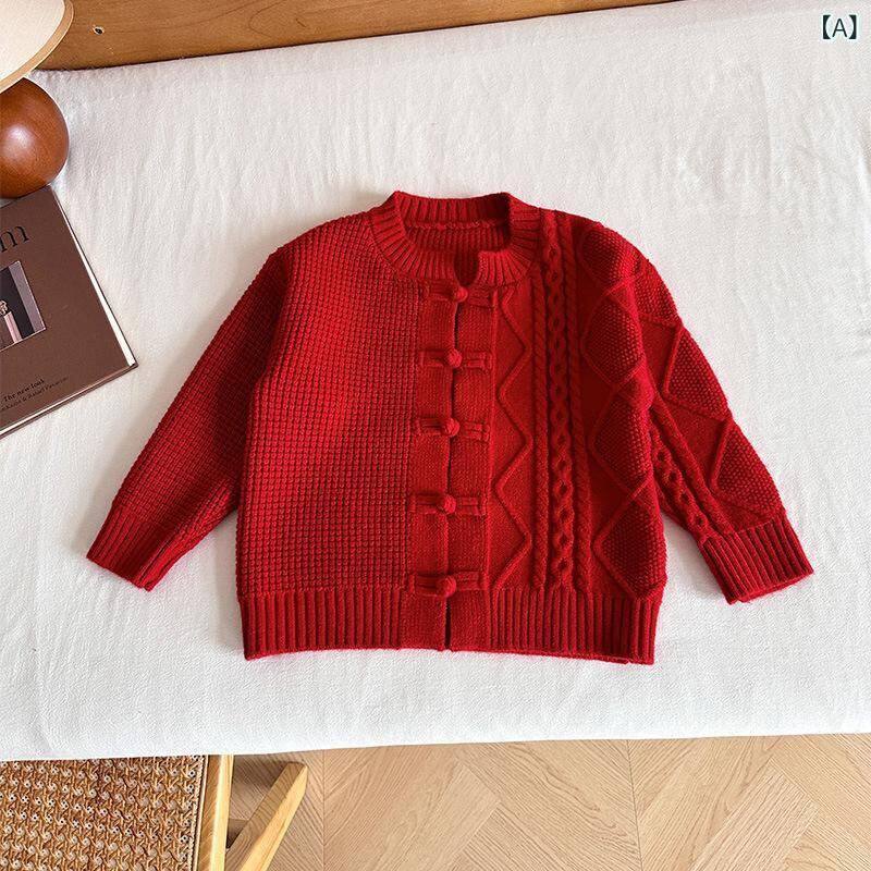 ニット カーディガン キッズ 男の子 子供服 新年 赤色 中華風 チャイナ風 厚手 秋冬