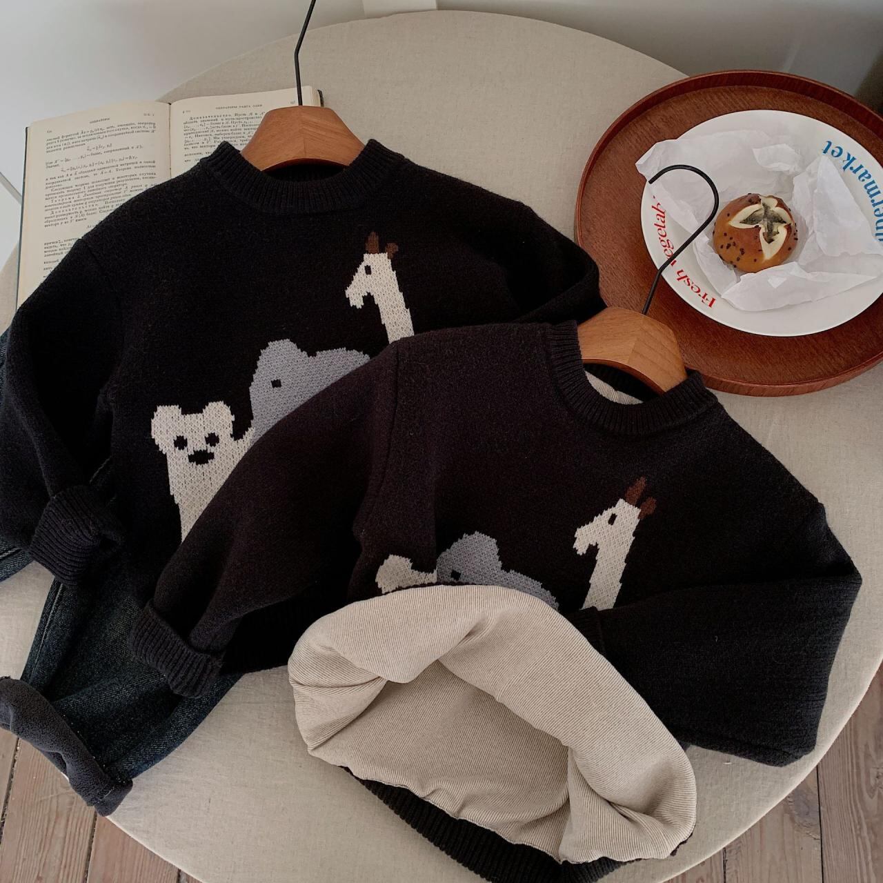 子供服 セーター 男の子 ニット トップス 厚手 秋冬 アニマル柄 ストライプ かわいい 普段着