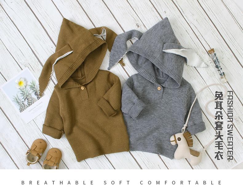 子供 ニット帽 ウサギ耳付き セーター ベビー 幼児 トップス 長袖 防紫外線 かわいい 普段使い 秋冬 グレー コーヒー