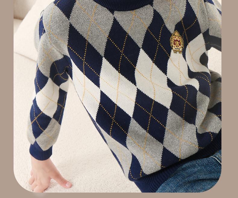 ニット 子供服 男の子 セーター 秋冬 長袖 トップス 中学生 高校生 通学着 普段着 格子柄 配色 学院風