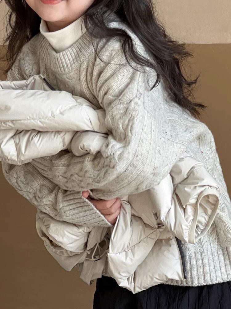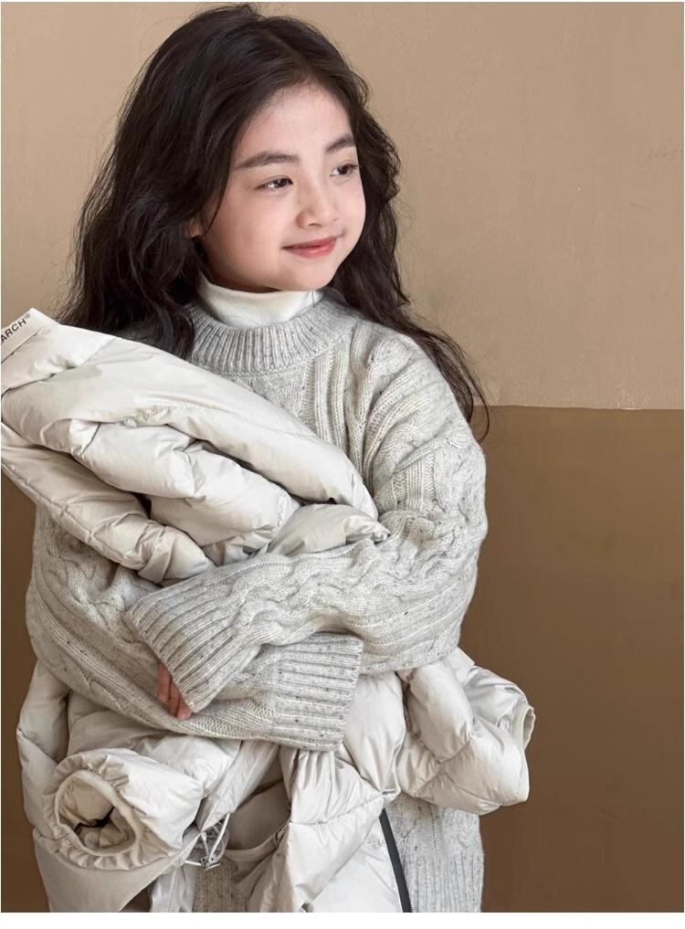ニット セーター ガールズ キッズ 秋冬 トップス プルオーバー ケーブル編み 鹿毛 ベルベット 灰色 彩点 ミックスカラー ゆったり かわいい カジュアル 普段使い 中学生 小学生 110 120 130 140 150 160