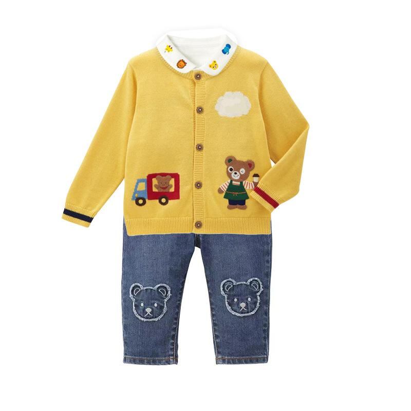 ニット 子供服 秋冬 男女兼用 かわいい クマ ウサギ 刺繍 ワッペン 長袖 カーディガン トップス 綿100% 通園 普段着