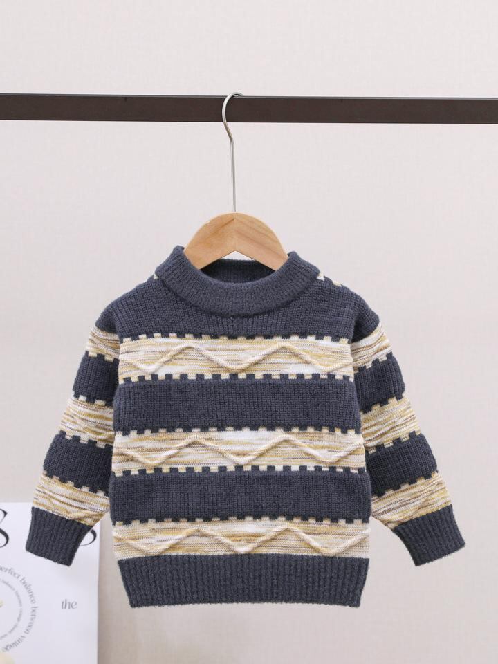 ニット キッズ 男の子 裏起毛 セーター ボーダー 切り替え 厚手 秋冬 普段使い 防寒 90 100 110 120 130 黒 グレー 緑 コーヒー