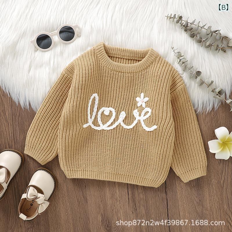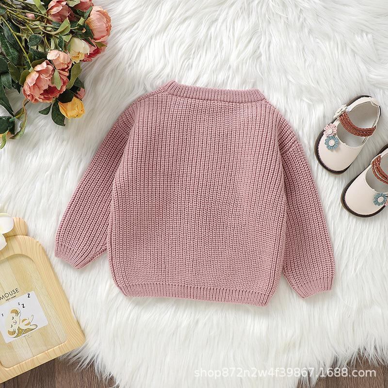 ニット ベビー服 秋冬 長袖トップス 乳幼児 女の子 セーター 手編み風 かわいい ピンク系 ベージュ系 レッド系 74 80 86 92 98
