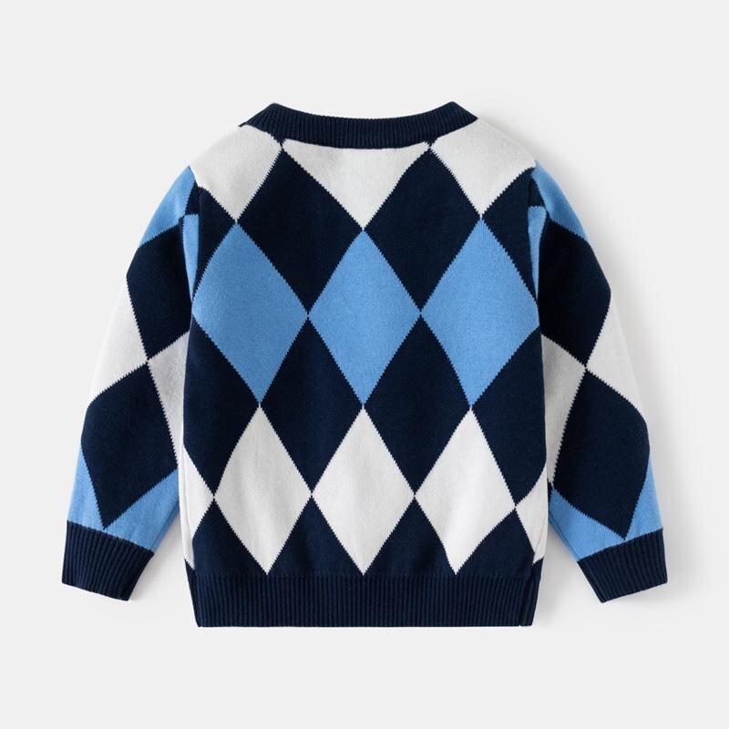 ニット キッズ 男の子 長袖 セーター 秋冬 子供 菱形 チェック柄 丸首 厚手 コットン 普段着 おしゃれ 90cm 100cm 110cm 120cm 130cm