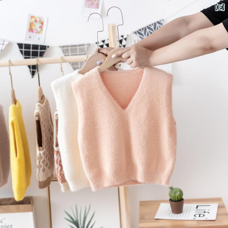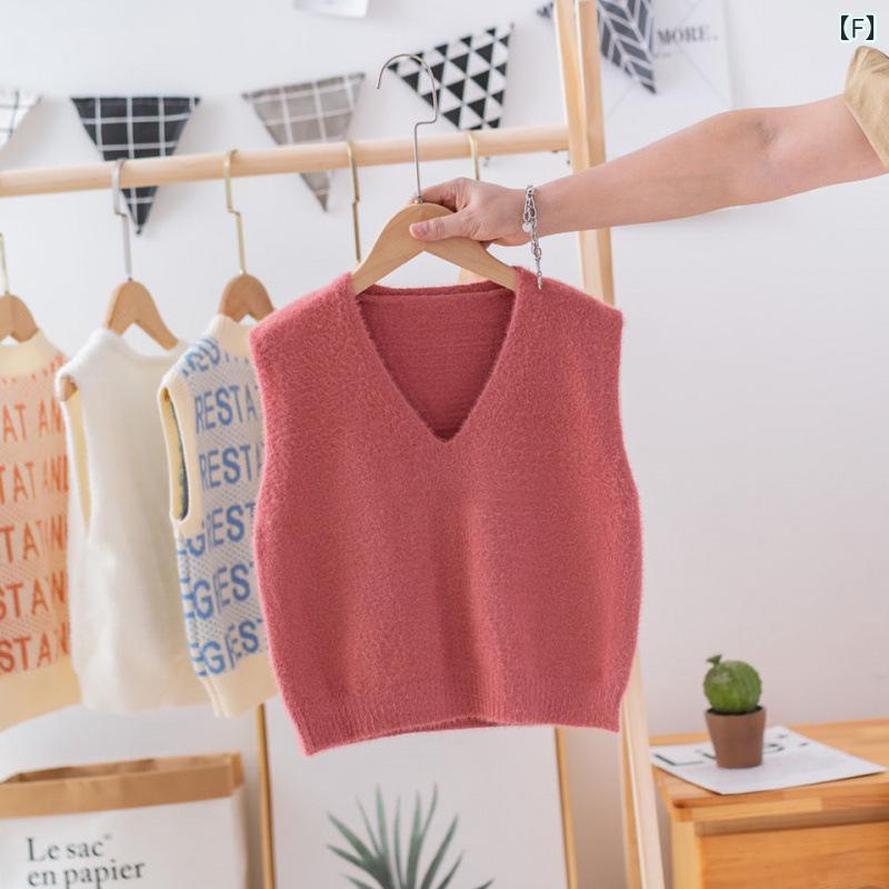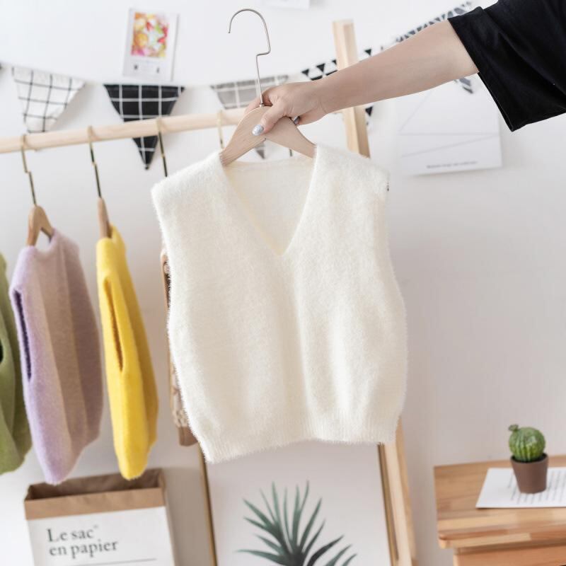 子供服 ニットベスト ベビー 男女兼用 春秋 Vネック ミンク ベスト 90 100 110 120 黄緑 アボカド色 薄紫 黄色 ピンク 赤 ターコイズ かわいい 普段使い