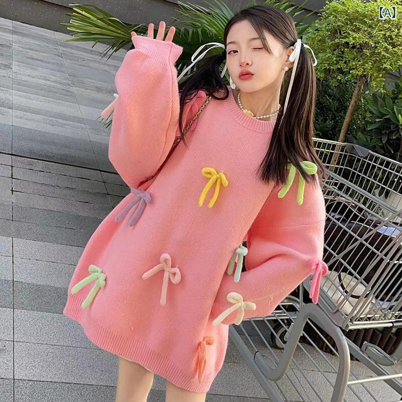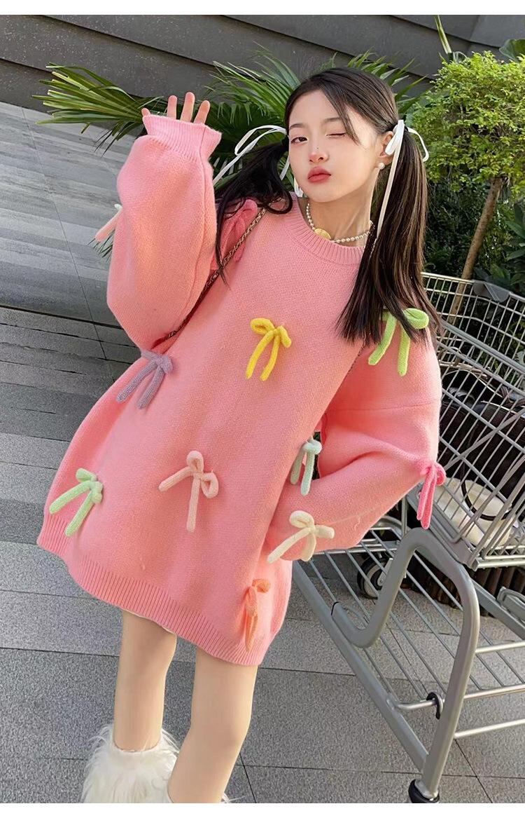 ニット・セーター ガールズ 子供服 秋冬 長袖 丸首 蝶結び 無地 伸縮性 チクチクしない かわいい 普段着