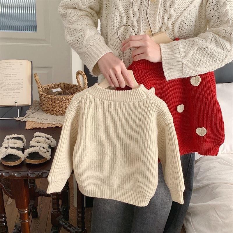 ニット・セーター キッズ 春秋 ニット 子供服 ベビー 愛心柄 ニット トップス 長袖 セーター 丸首 90cm 100cm 110cm 120cm 130cm 140cm かわいい ガーリー やわらかい 普段着 おしゃれ着