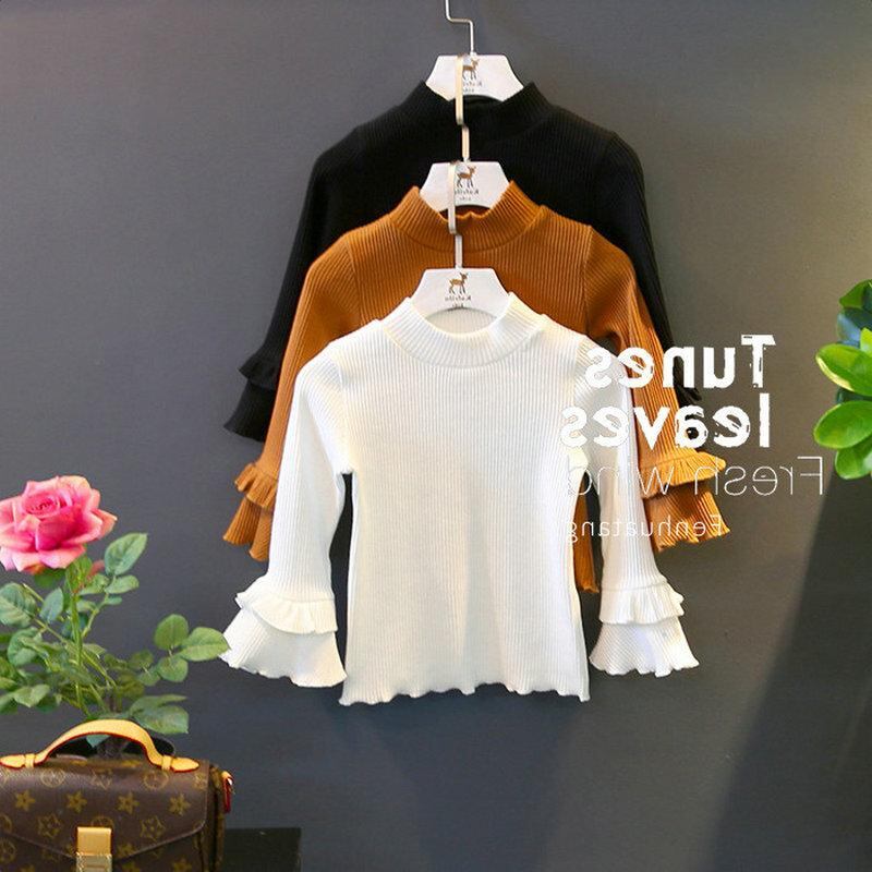 子供服 ニット 女の子 ニットトップス ハーフハイネック ベルスリーブ カットソー 3歳 4歳 5歳 6歳 7歳 8歳 厚手 春秋 ブラック コーヒー ホワイト