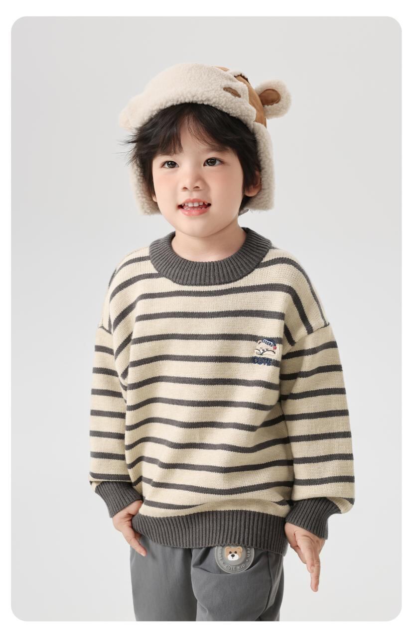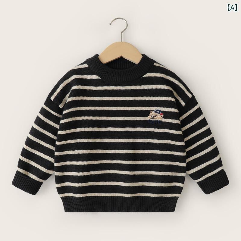 子供服 ニット 冬物 ニットセーター 男の子 長袖 トップス 普段着 部屋着 かわいい 暖かい 秋冬 ストライプ ブラック系 レッド