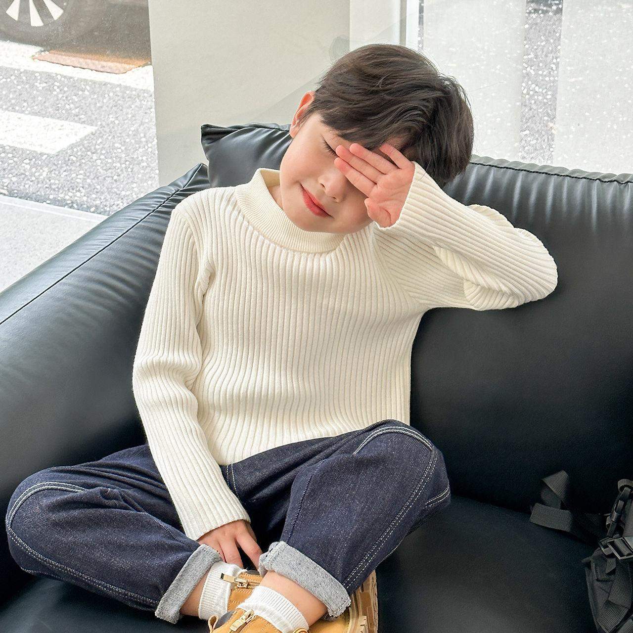 ニット キッズ 男の子 子供服 セーター トップス 秋冬 長袖 無地 カジュアル 黒 ブラック 白 オフホワイト グレー 110cm 120cm 130cm 140cm 150cm 160cm